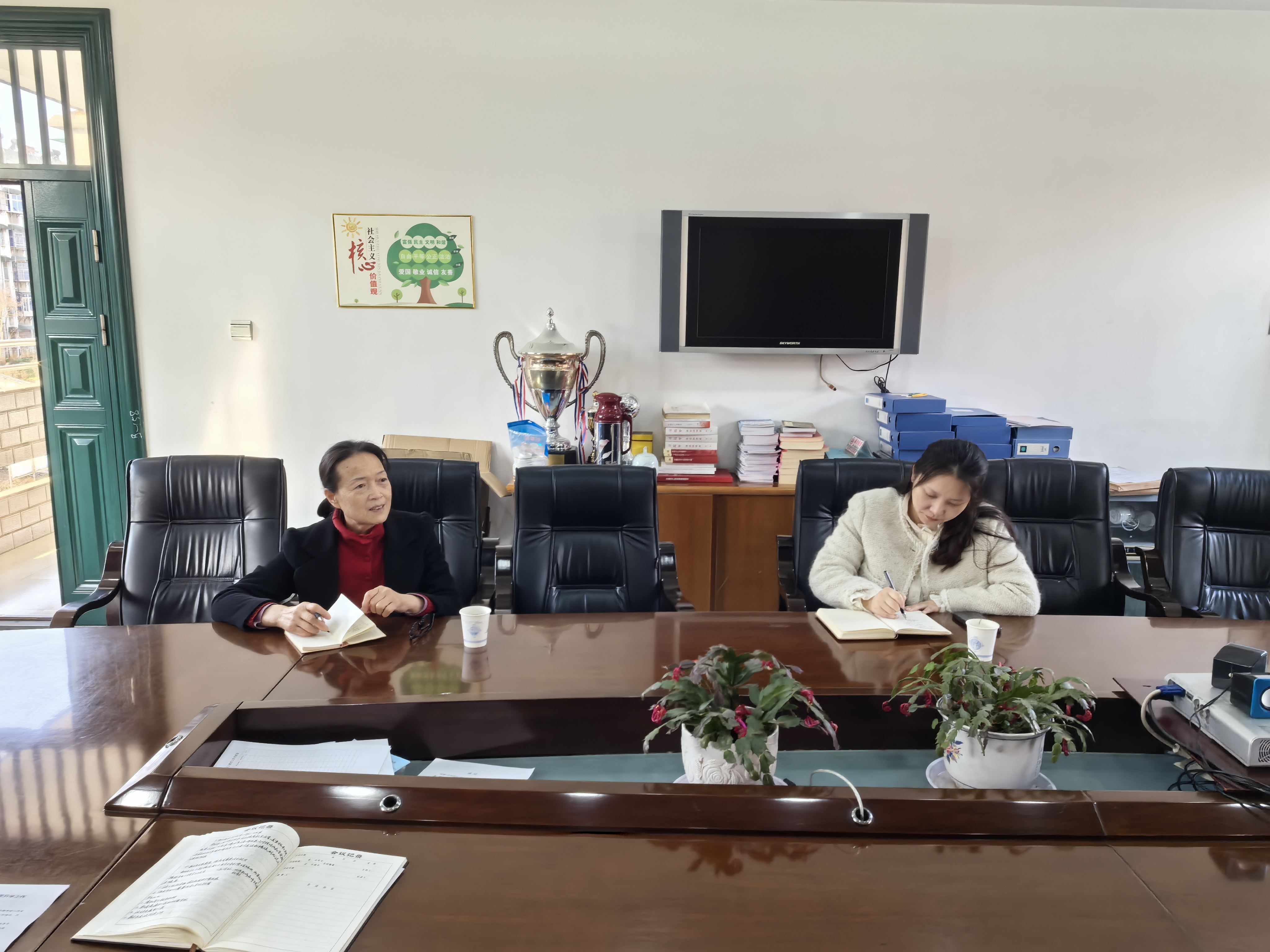 在会议室,督导组听取学校工作汇报,重点围绕体育活动强化、防欺凌教育宣传、心理健康教育推进及“双减”政策落实提出指导要求。强调要严格落实每日体育课、大课间及课间户外活动制度,筑牢运动安全防线;依托三级健康网络体系,深化家校社共育,提升家长教育认知;规范教辅材料及读物进校园管理,落实“一教一辅”,以实际举措推动教育教学提质增效。